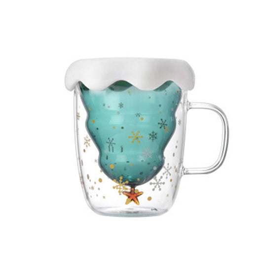 Double Heat Resistant Glass Coffee Cup โ Christmas Tree Design with Handle and Lid